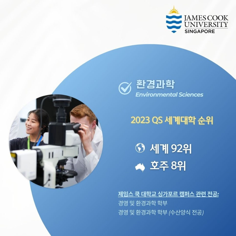 그럼 제임스 쿡 대학교 주요 학과들의 세계 순위도 궁금하시죠?