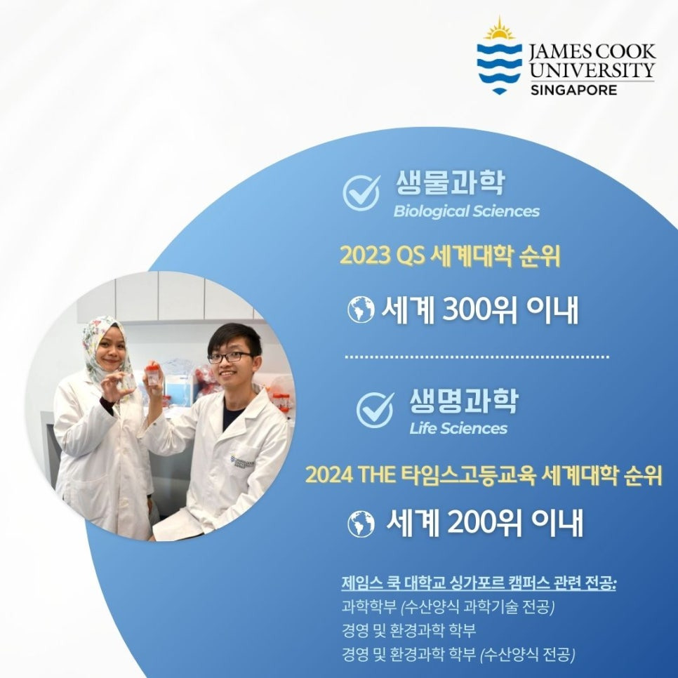 제임스 쿡 대학교는 심리학 및 해양생물과학 분야에서 높은 순위를 보이고 있고, 우리나라 학생들이 선호하는 의대, 치의대, 수의대, 간호학과, 물리치료학 전공도 있답니다.